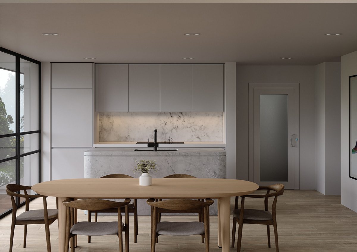 A sophisticated, contemporary design featuring clean lines and high-end finishes for a chic and polished living environment.